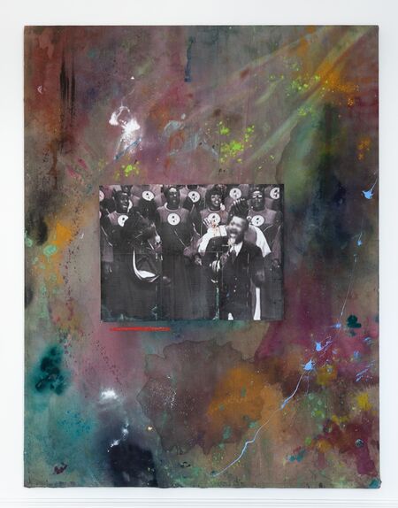 Primarily working with acrylics, Cooper has developed a watercolor-like aesthetic by using rubbing alcohol to dissolve parts of the pigment. This technique results in a layered glaze of color that spans different shades, and actively dwells on concepts of memory and erasure. These bases are then collaged, reinterpreting traditional acrylic painting through a mixed-media approach.