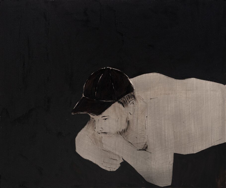 The figures in Brett Charles Seiler’s paintings are stripped down in more than one sense. Spare brushstrokes, a pared-back palette, and blank expressions all but rid them of eroticism; what is left are tender, quiet scenes of male intimacy.