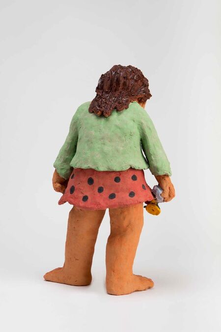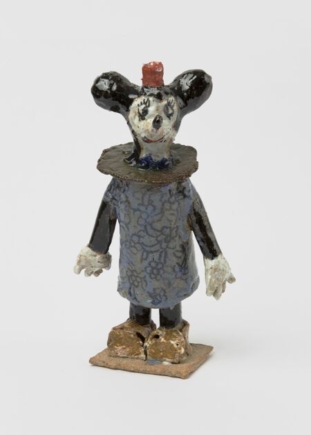 Frimkess’s skill is her ability to conjoin modern folklore in wry, politically conscious picaresque narratives, as in Cup in Spanish (2010). Distorted figurines of Mickey and Minnie Mouse, depicted as wary and a little bewildered, are Frimkess’s most famed works. In 2024, the artist’s work will be the subject of a major retrospective at LACMA.