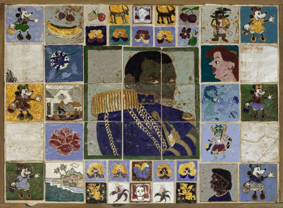 Magdalena Suarez Frimkess’s unusual objects recycle mass-produced images. Having worked in clay since the 1970s, the artist draws upon many influences, from Peter Voulkos to Toulouse-Lautrec, Zuni patterns, and Betty Boop. In her tile pieces, she transposes episodic elements from comic strips, using the stylised patterns of Hispano-Moresque tiles. Frimkess is as likely to use a delft blue pigment, traditional in Northern European pottery, as she is to mimic a vessel representing a Mesoamerican deity.