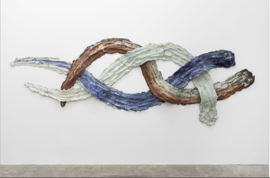 Brie Ruais’s work expands the notion of corporeally oriented ceramics. ‘‘The sculptures tap into the body’s knowledge as opposed to the mind. I let the body and clay lead,” Ruais said in the press release for “Some Things I Know About Being In A Body”, her 2021 solo show at Albertz Benda. This tenet is expressed best in Intertwining Bodies, Roots, Hair (130lbs times three) (2022), which was featured in the Hayward Gallery’s exhibition “Strange Clay.”
