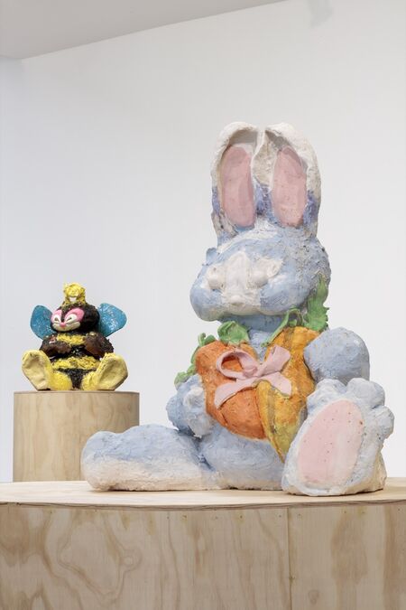 In the book Alake Shilling: The Hippest Trip in America—By Land, Air and Sea (2023), the artist displays images of her relatable source material: Disney cartoons, children’s animations, and memes. Works like Jolly Bear (2021) are uncanny: totally monochromatic versions of their original inspiration. On a recent podcast, the artist said that she intends for her sculptures to create a universal experience, striving to capture both pleasure and pain.