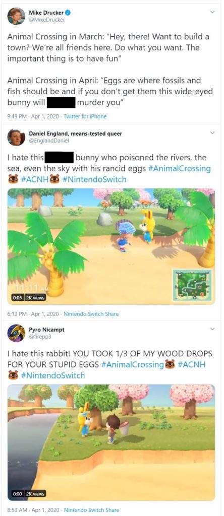 Obviously, fans are not happy about this. Twitter is filled with people complaining about the eggs and their evil-looking bunny overlord. Honestly, it’s hard to blame them. I also can’t wait to see the back of that evil-looking git.