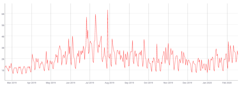 Bitcoin 1-year adjusted transaction volume. Source: Coin Metrics
