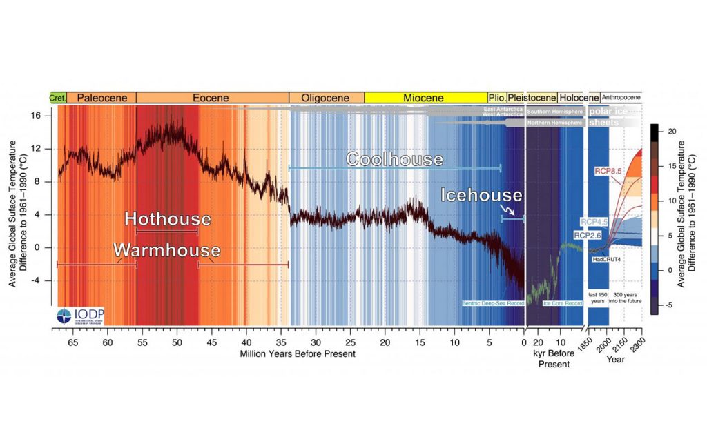 A high-fidelity record of variations in our planet’s temperatures was created and revealed this week, spanning a cool 66 million years into the past. This timeline is the most complete record of its kind, showing global mean temperatures of our planet, showing four significantly different states. These states were named Hothouse, Warmhouse, Coolhouse, and Icehouse.