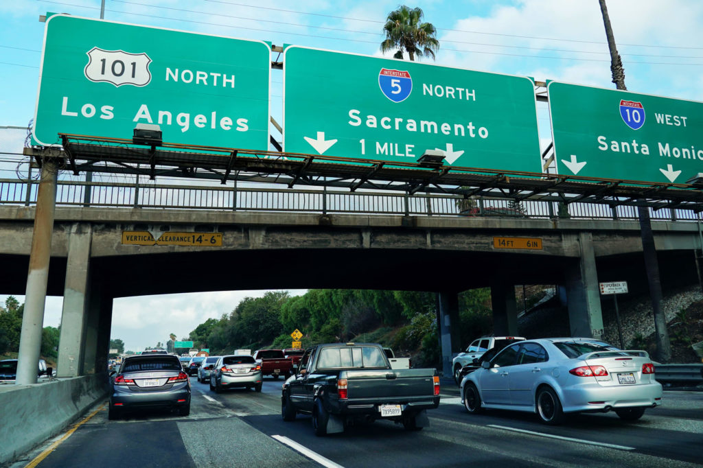 Morning traffic makes its way along a freeway in Los Angeles, California, September 19, 2019.
