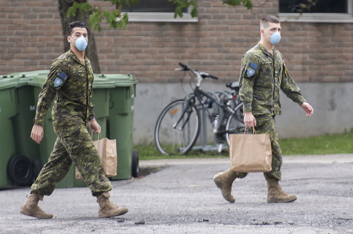 Members of the Canadian Armed Forces are shown at Residence Yvon-Brunet, a long-term care home in Montreal, Saturday, as the COVID-19 pandemic continues in Canada and around the world. (The Canadian Press/Graham Hughes)