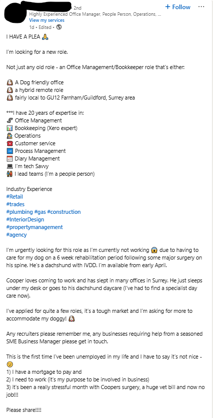 Recently, I came across the above picture of a man during the Great Depression wearing a sandwich board advertising that he was looking for work. Aside from the number of people who’ll see it, his sandwich board doesn’t differ much from the ‘I’m now available’ posts I see on LinkedIn.