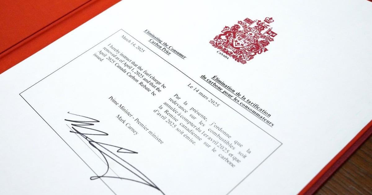 After suggesting he would remove the consumer carbon price by the end of the day, Carney signed an order-in-council Friday to terminate it “as of April 1, 2025.”