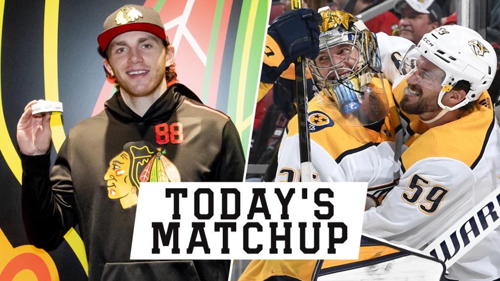 The matchup today pits Chicago Blackhawks forward Patrick Kane scoring his 1,000th NHL point on Jan. 19 against Nashville Predators goalie Pekka Rinne‘s goal on Jan. 9.
