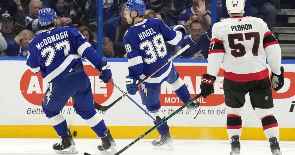 TAMPA, Fla. (AP) — Brandon Hagel scored less than two minutes into the third period to give the Tampa Bay Lightning the lead for good in a 4-3 win on Tuesday night that snapped the Ottawa Senators’ five-game NHL winning streak.