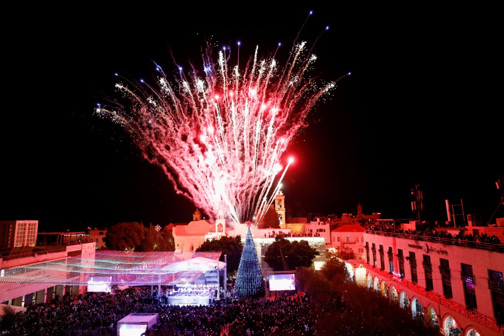 Residents lit up a giant Christmas tree outside Bethlehem’s Church of the Nativity on Saturday, hoping that a new coronavirus variant doesn’t ruin another holiday season in the traditional birthplace of Jesus.