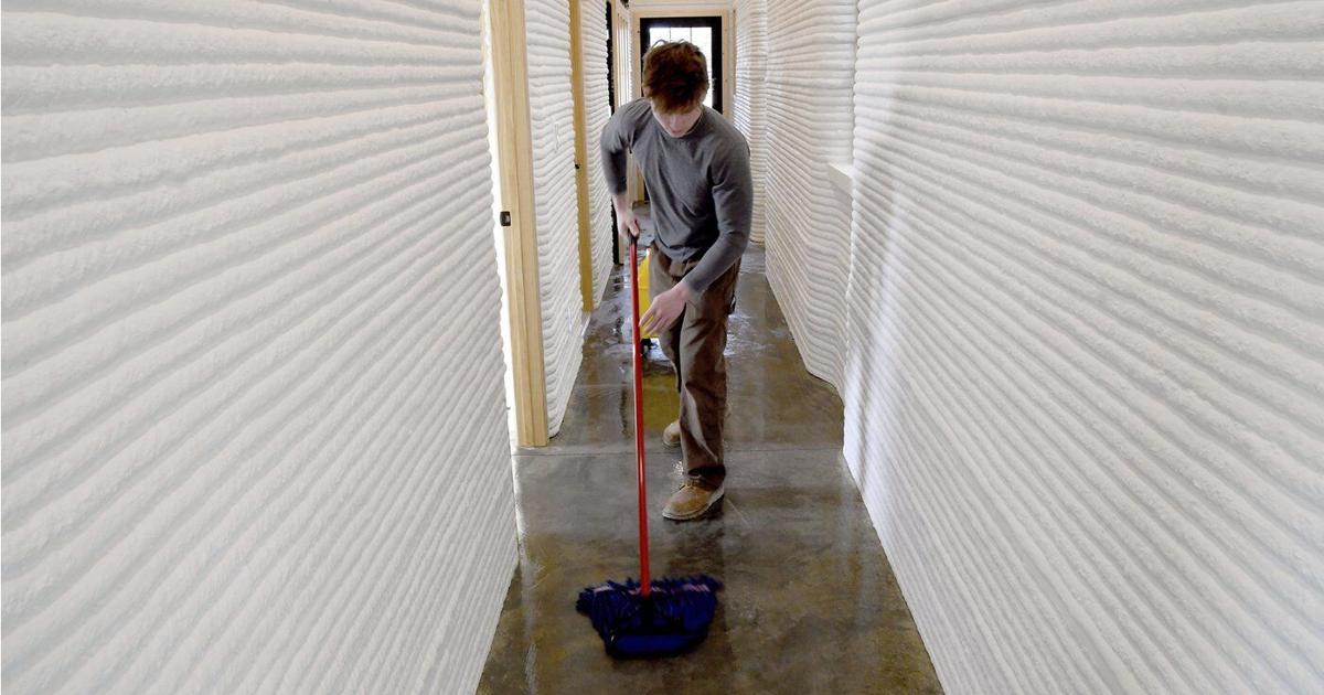 Grant Hamel, CEO and co-founder of VeroTouch, stood inside one of the homes his company built, the wall behind him made out of rolling layers of concrete, distinct to a 3D printer. The technology could eventually reduce labor costs and the time it takes to build an abode, but is farther off than manufactured or modular methods from making a dent in the housing crisis.