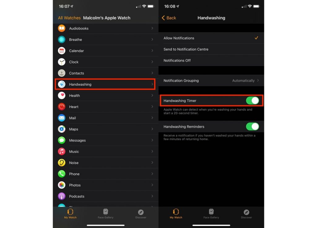 How to turn Handwashing detection on and off via your Apple Watch