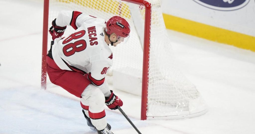 Pyotr Kochetkov made 26 saves, and Slavin also had an assist. Martin Necas added an empty-netter.