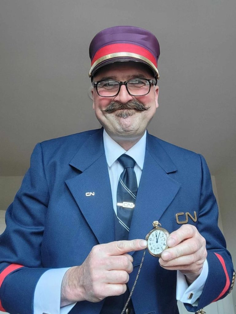 Montagano is not a traditional federal election candidate. His campaign materials show him in a conductor’s uniform — a nod to his passion for trains — and he stamps his fliers with a ticket punch.
