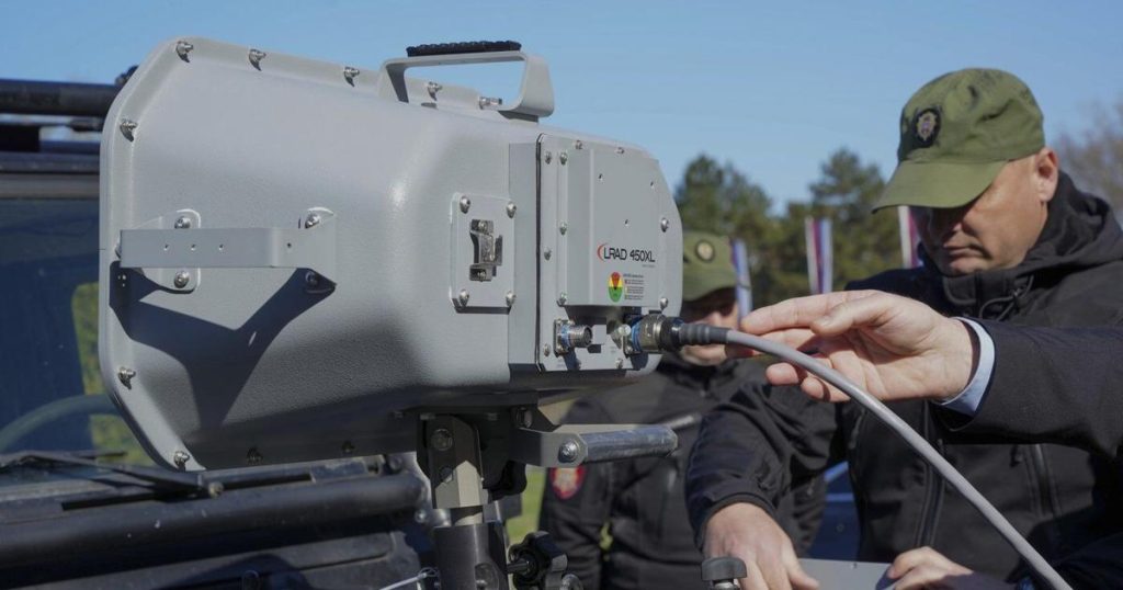 The photos showed nothing more than “loudspeakers” that also are available on eBay, Interior Minister Ivica Dacic said. The rectangular devices, purchased from a U.S. supplier in 2021, serve to emit warnings to the crowds in case of major trouble, he said.