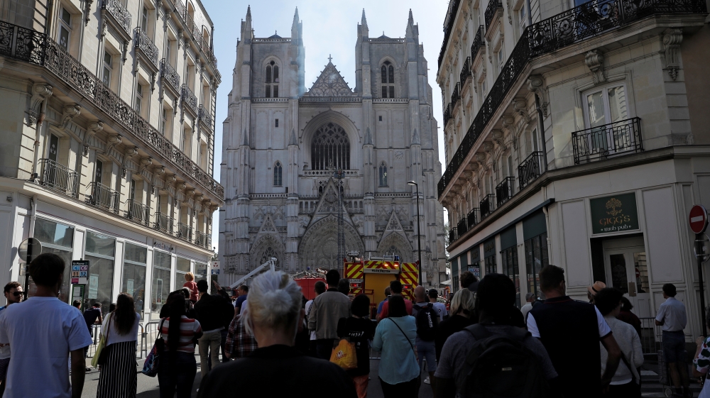 A 39-year-old man has been arrested in connection with a fire in the 15th-century cathedral in the French city of Nantes that blew out stained glass windows and destroyed the grand organ.