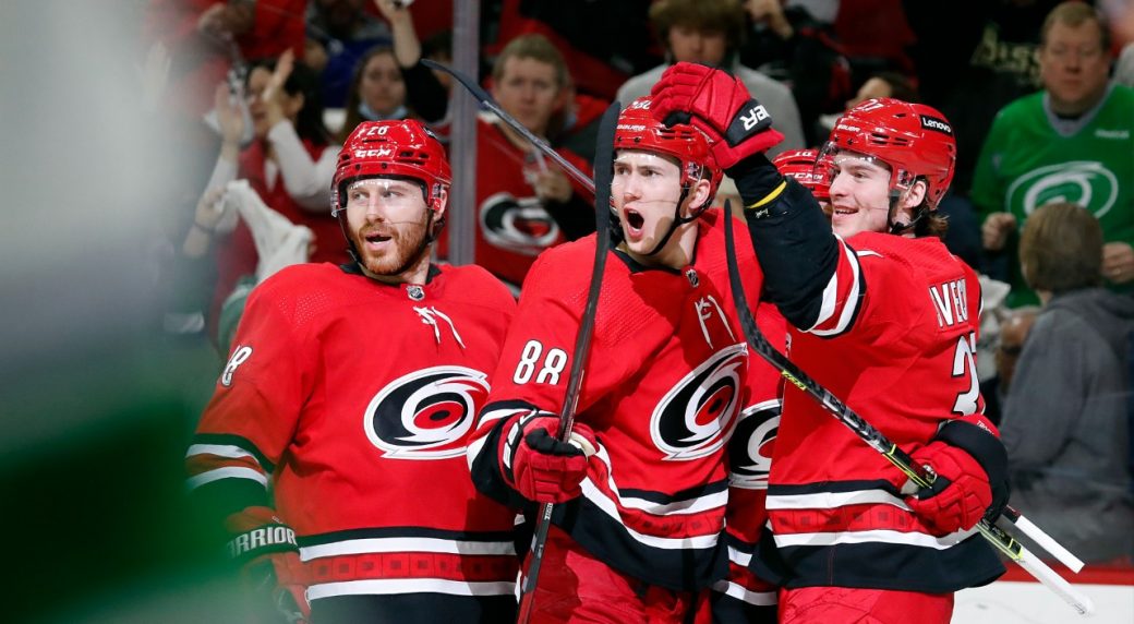 Sebastian Aho and Steven Lorentz had the other Carolina goals and Andrei Svechnikov posted two assists. Frederik Andersen made 30 saves.
