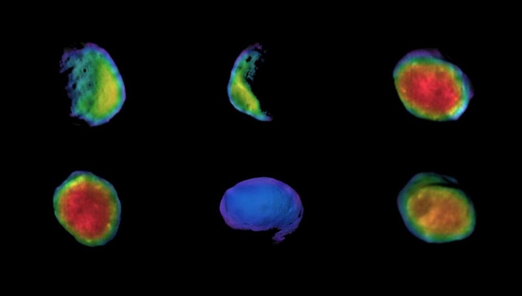 This trio of colorful new shots of the Martian moon Phobos were captured over the past winter and this spring, and expose extreme temperature variations within the rough-hewn moon as it travels in and out of Mars’ prominent shadow.