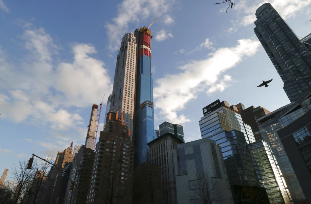 Residential buildings Central Park Tower and 220 Central Park South (left) rise above Columbus Circle on December 26, 2018 in New York City.