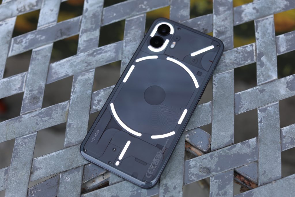 Like the Phone (1), the new model bears more than a passing resemblance to the iPhone from the front. True story: I thought I’d misplaced the Phone (2) for a bit, but it turns out I was mistaking it for an Apple handset while it was sitting on my desk the entire time. Things, of course, get a lot clearer on the other side.