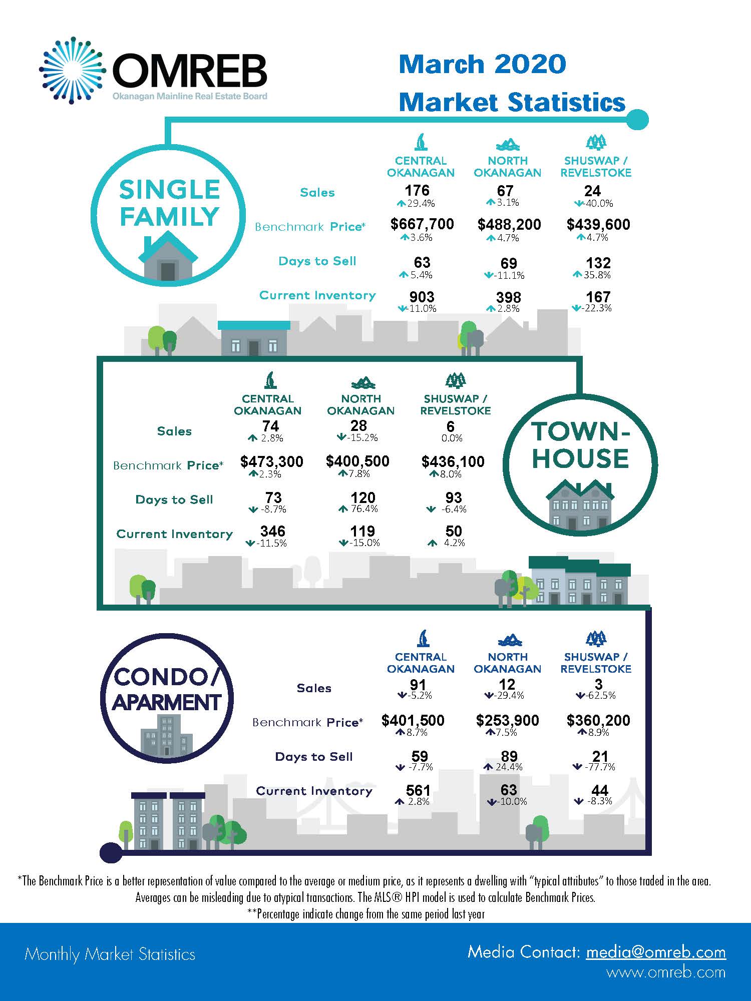 “While the market remained steady in March this will likely slow down as the economic impacts of COVID-19 continue to develop,” said president of the Okanagan Mainline Real Estate Board (OMREB), Michael Loewen. “In the meantime, real estate professionals are still able to utilize technology-driven solutions to help accommodate these transactions during self-distancing precautions.”