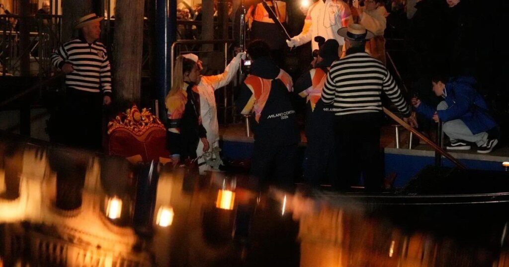 Olympic flame glides on traditional Venetian boats down the Grand Canal