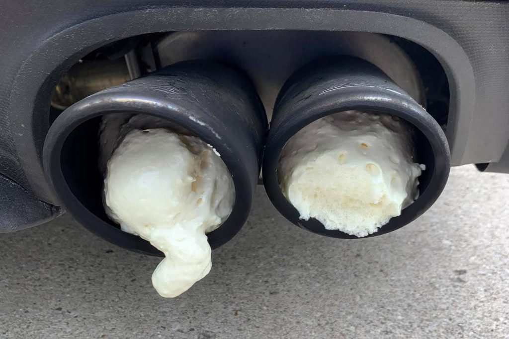 But besides the note, the neighbour also left Aaron Robinson a nasty surprise: when he checked his Mustang’s exhaust, he’d found it had been filled with expanding foam.