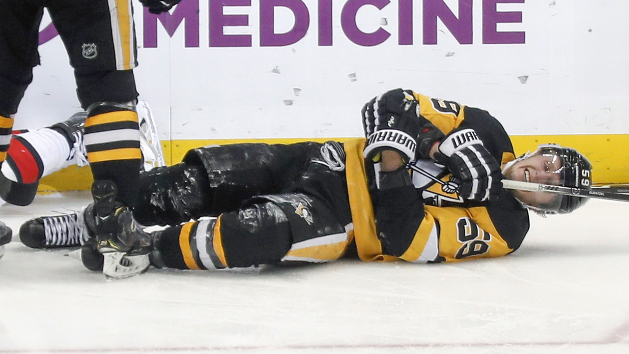 Guentzel’s apparent injury was sustained roughly seven minutes into the third period on a play in which he registered his 200th NHL point. He skated to the net and tapped in a pass from Evgeni Malkin, then got tangled up with Ottawa’s Thomas Chabot and crashed into the boards.