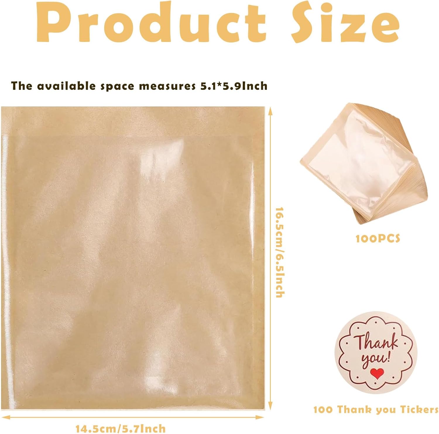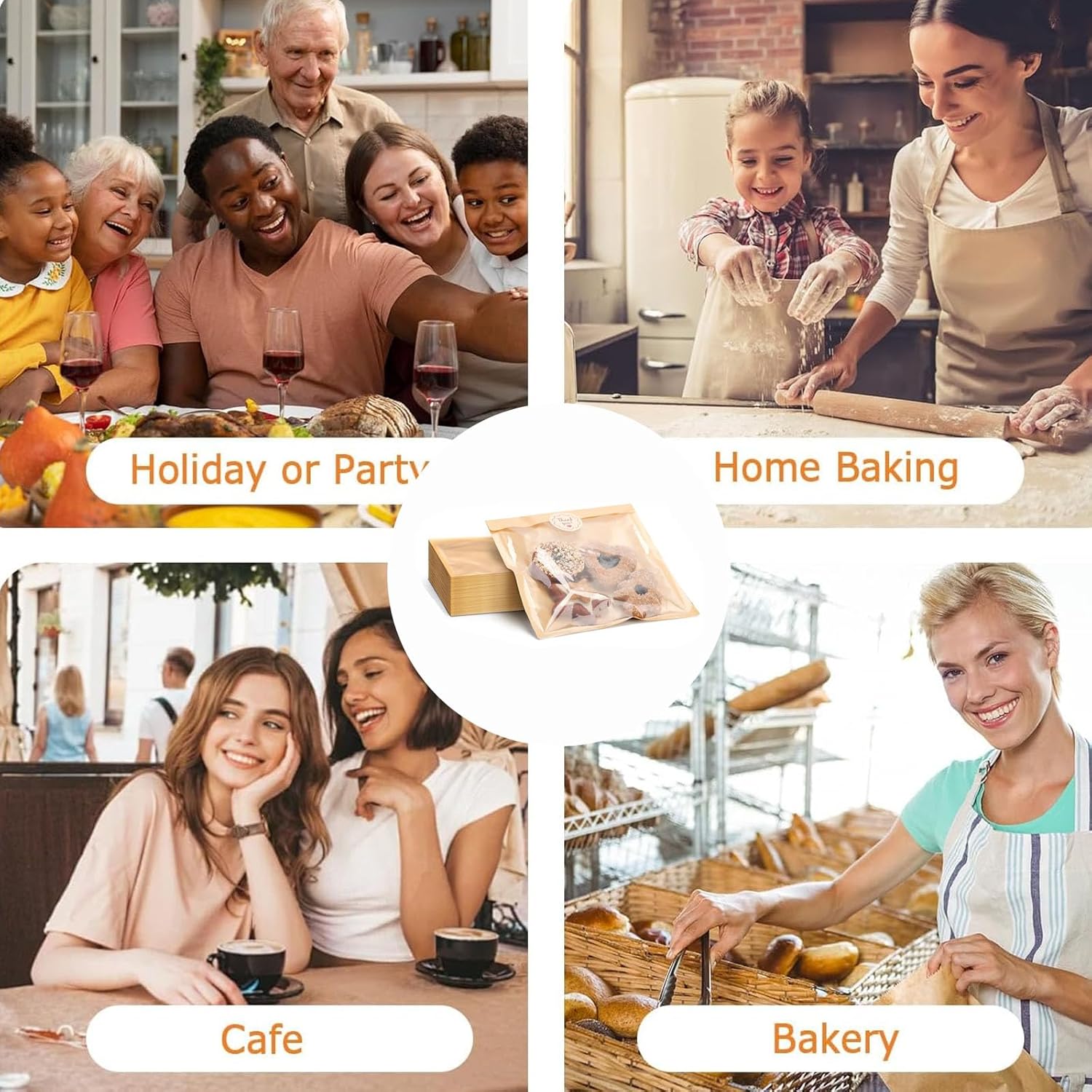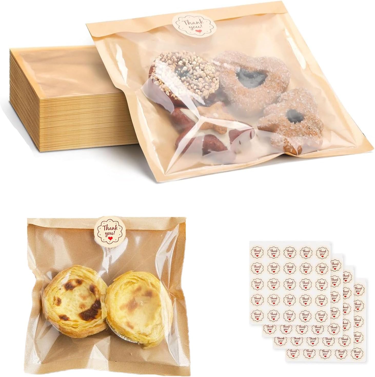 Bakery Bags: You will get 100 durable cookie bags + 100 sealing stickers! Perfect for bake sale packaging, bakeries, or gifting. Cost-effective & professional-grade for cookies, muffins, and treats.