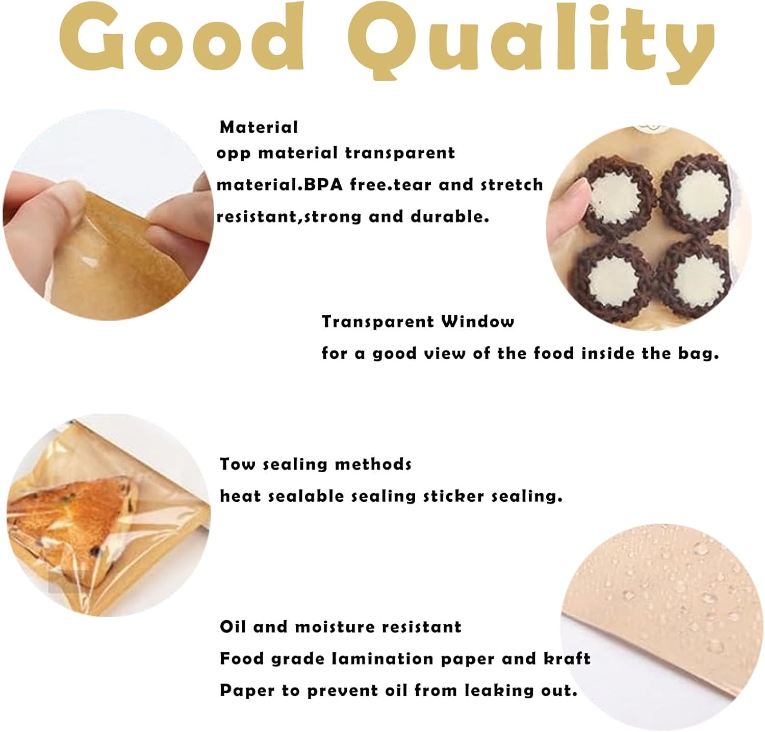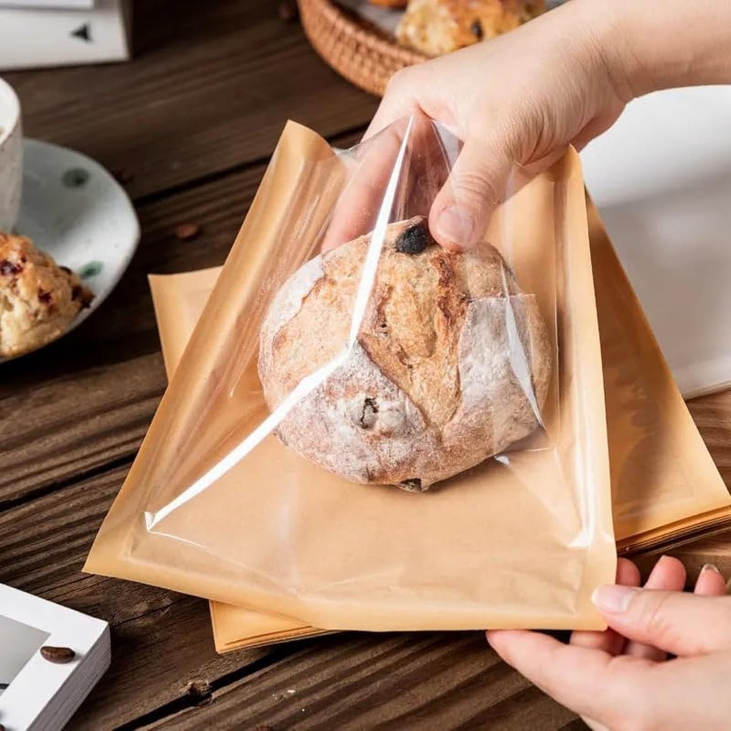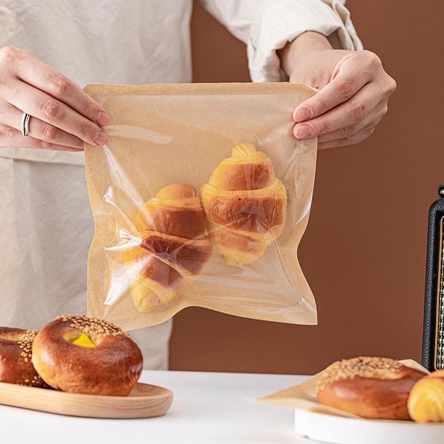 Food-Grade Material: Made with food-grade kraft paper and an oil-resistant inner layer. Shields cookies, cakes, and baked goods from grease, moisture, and staleness—just like wax paper bags + cellophane bags combined.