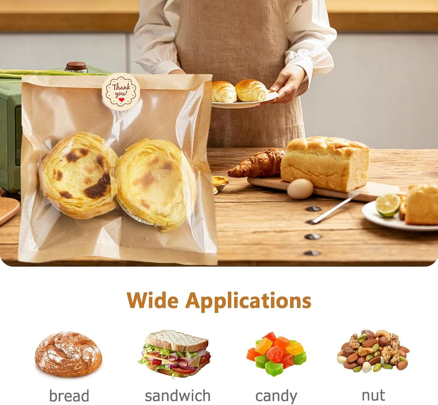 Heat-Sealable or Sticker Closure: Bread bags seal easily with heat tools (or use included stickers) for airtight freshness. Keeps treats crisp and neatly packaged—ideal for individual cookie bags or bulk storage.