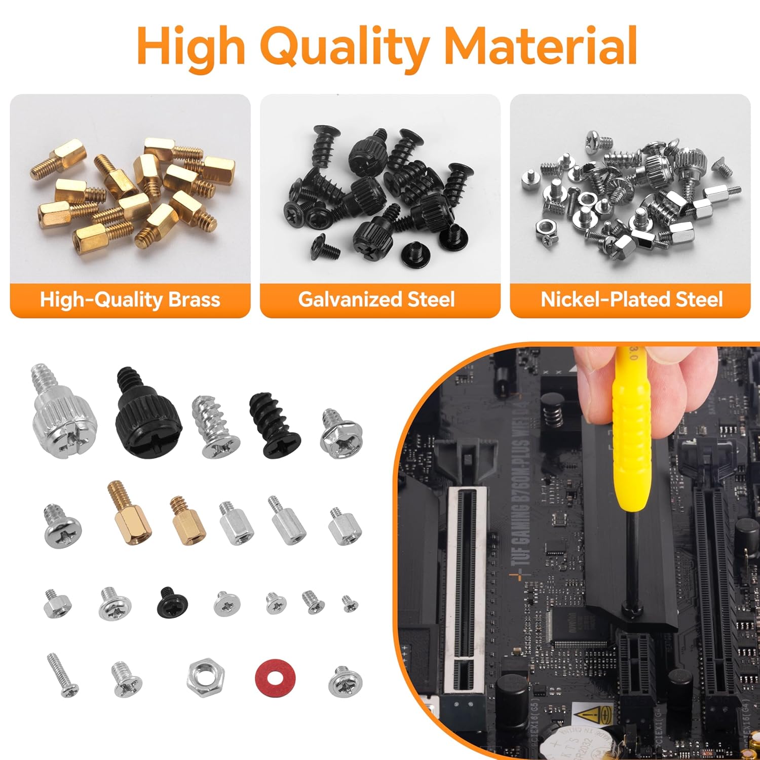 【High Quality Computer Screws Kit】: Our computer screws and standoff are made of high-quality brass, galvanized steel and nickel-plated steel which have better rust resistance. You can install or remove them time and time again without any worry about stripping a head or snapping a screw. A perfect choice for computer repair or DIY.