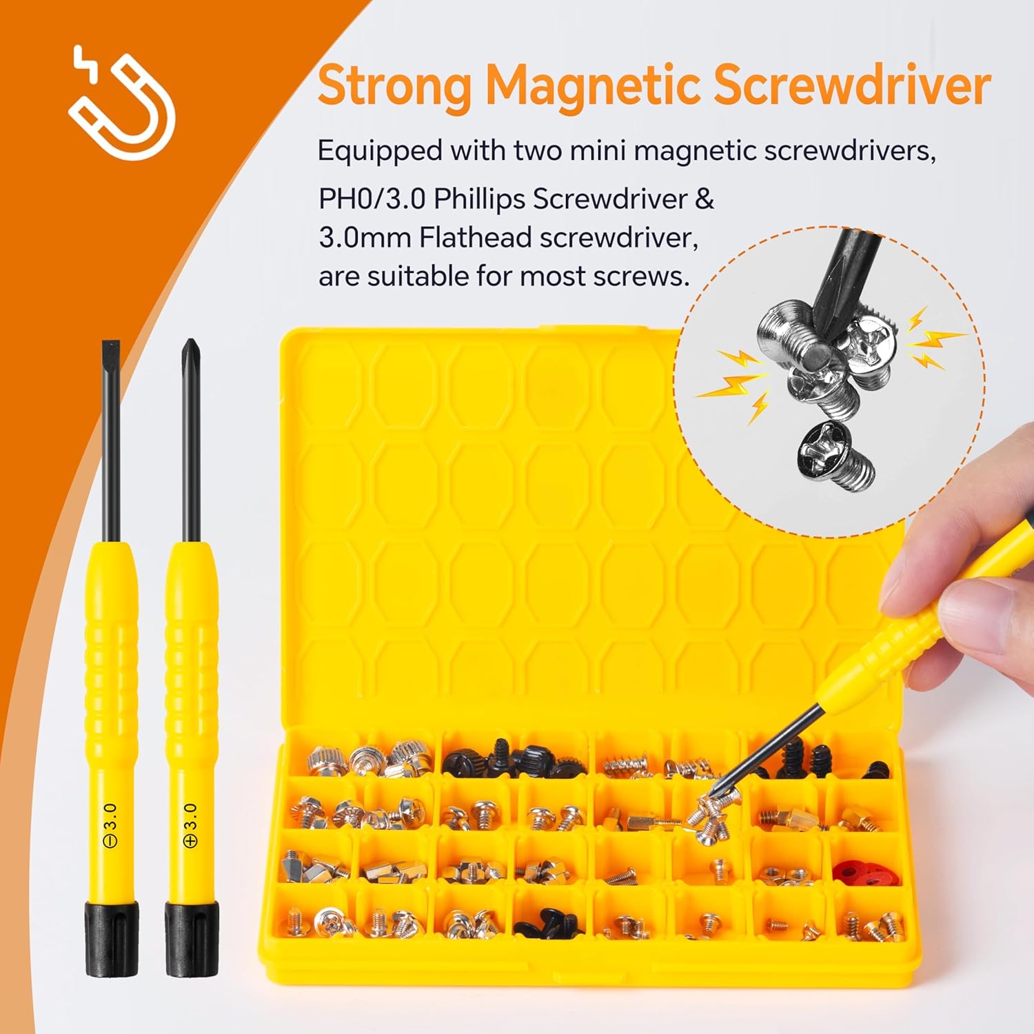 【Strong Magnetic Screwdriver】: Since some screws are too small, we provide you with two magnetic screwdriver which is PH0/3.0 Phillips Screwdriver & 3.0mm Flathead screwdriver to help you install quickly. Screwdriver bits make it perfect to hold and handle tiny screws in case of missing or dropping, magnetized tips. You may use all the screws in this kit but the screwdriver will last forever.