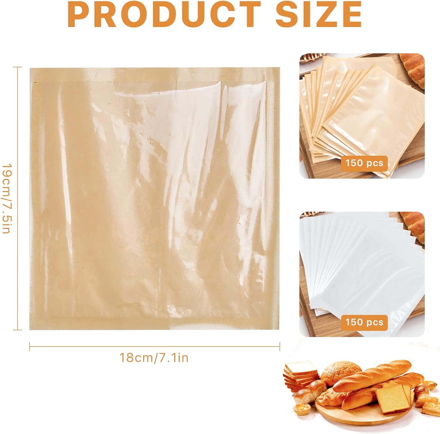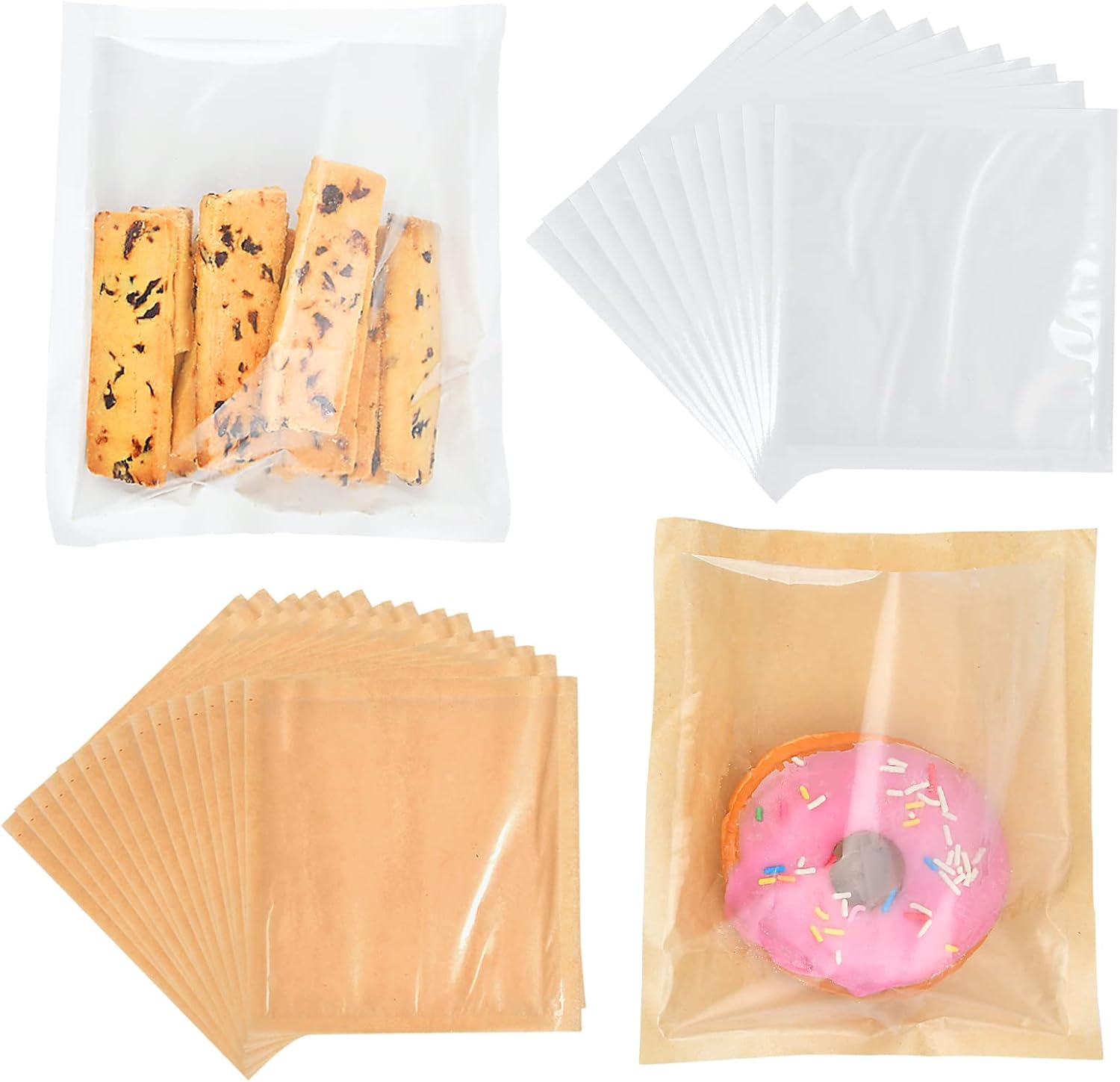 VALUE PACK: You will get 300pcs kraft paper bakery bags, 150pcs white transparent greaseproof paper bags and 150 pcs brown translucent kraft paper bags, each measures 7.1 x 7.5 inches that perfect for packaing Donuts, Cookies,Snacks, Sandwiches and other Treats.