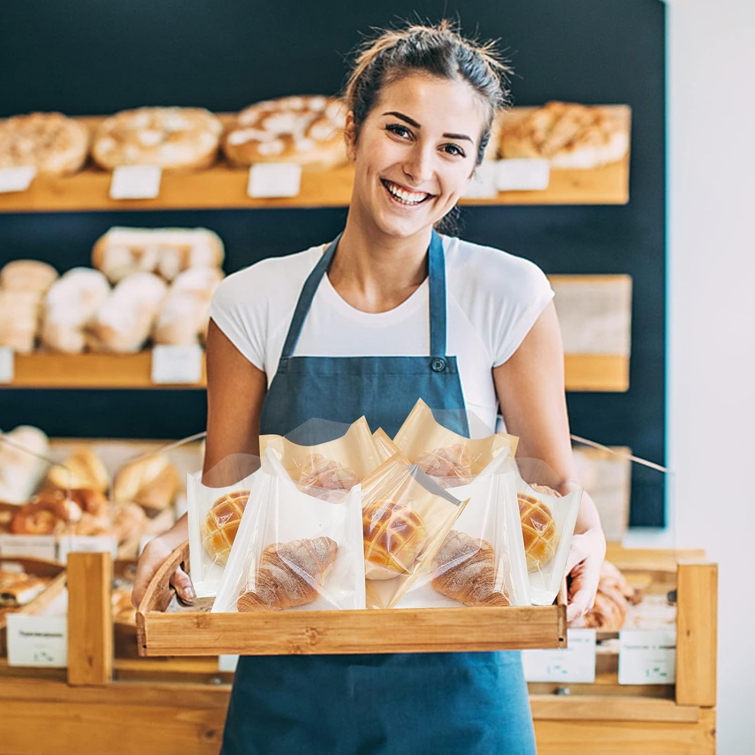 300 Pcs Greaseproof Paper Bread Bags with Window for Packaging Baked Goods Cookie Cake Bread Sandwich Candy Snack ect.