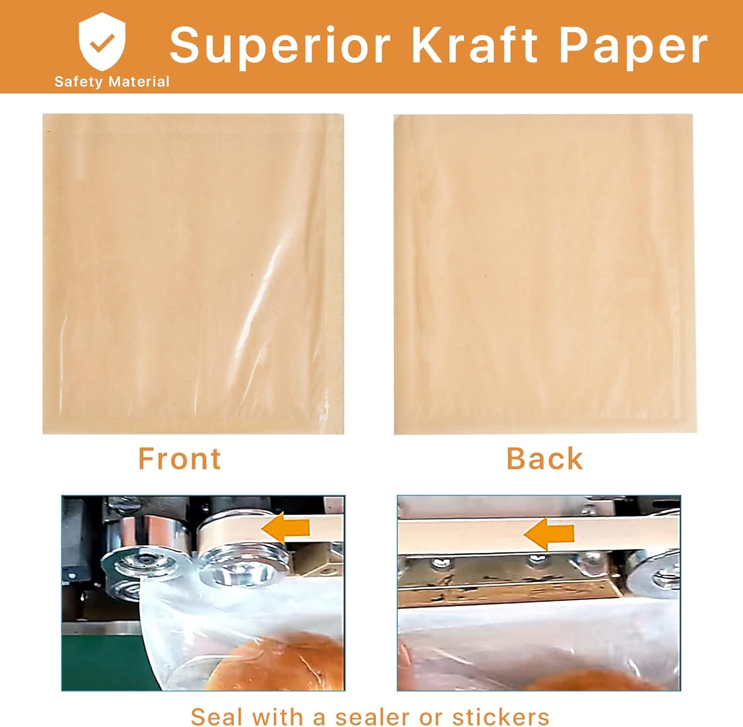 SAFE MATERIAL: Our pastry bags are made of natural kraft paper, which is food safe and idea for keeping food fresh and clean. The surface coated with grease-resistant film and provide a moisture barrier, also can be directly heat sealed.