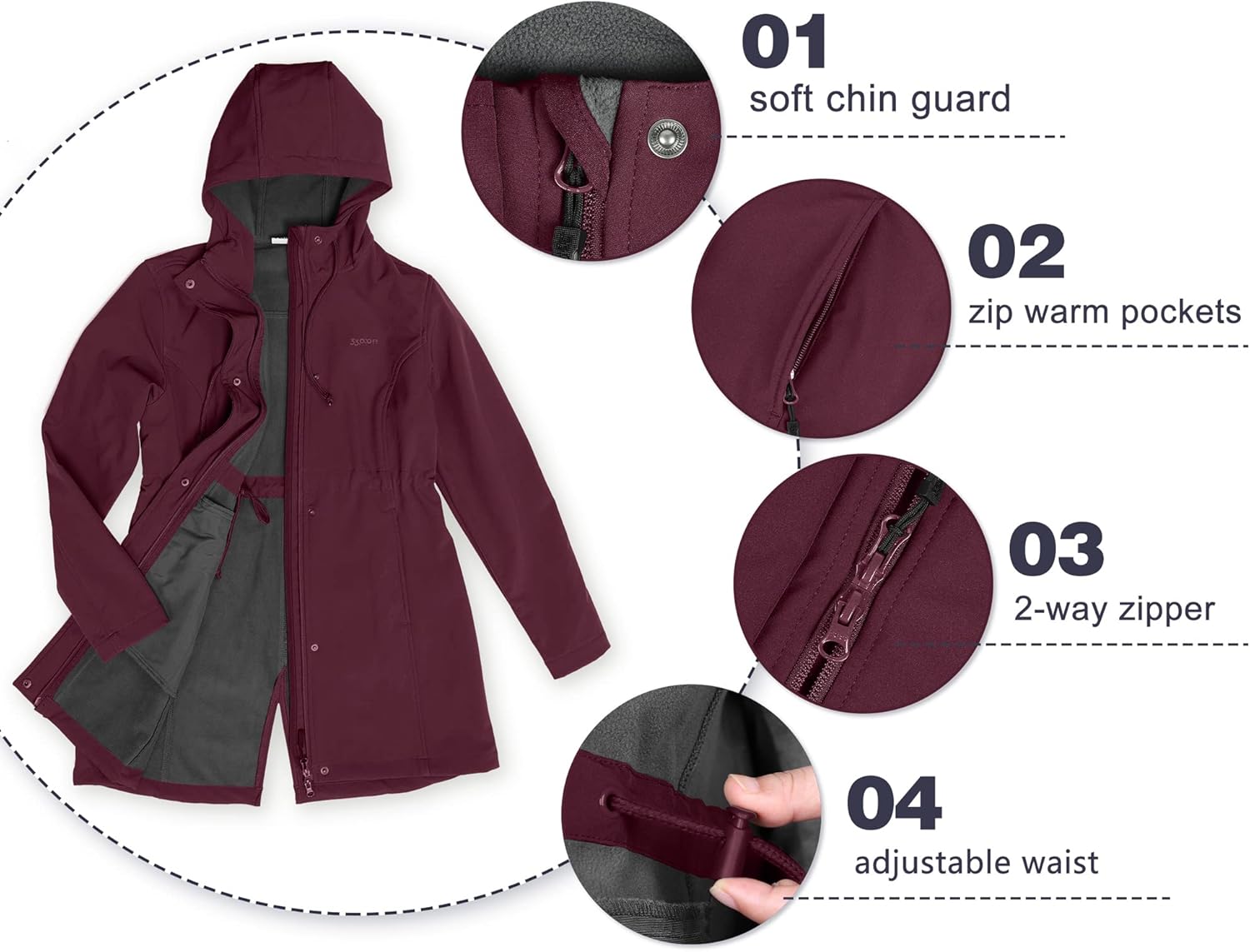 Be the first to review “33,000ft Women’s Softshell Long Jacket with Hood F…”