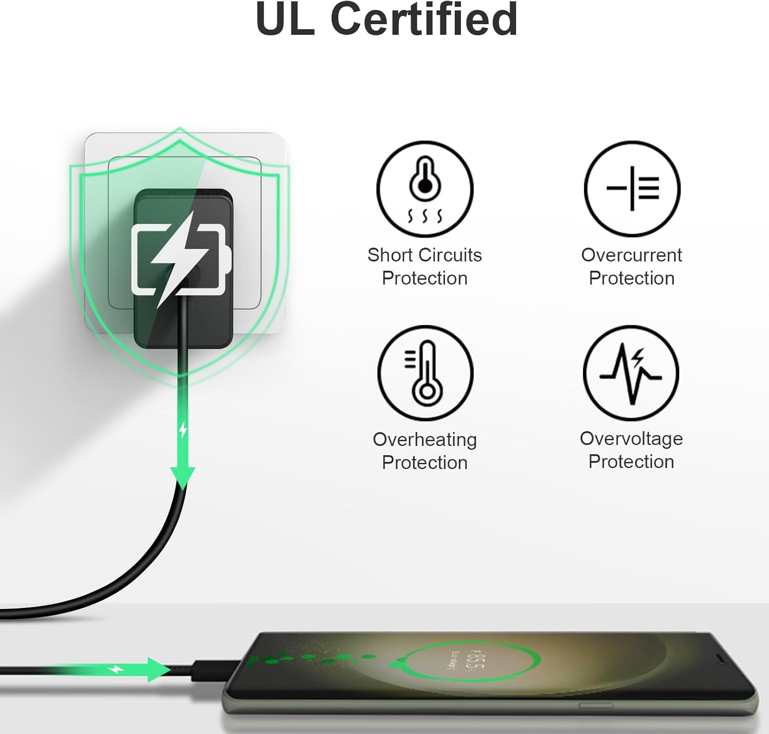 Comprehensive Safety 45W USB C Samsung Charger : UL-certified for safety, the 45W USB-C Charger provides multiple layers of protection against short circuits, overcurrent, overvoltage, overheating, and overcharging, safeguarding both for Galaxy S24 Ultra and the 45 Watt USB C Charger