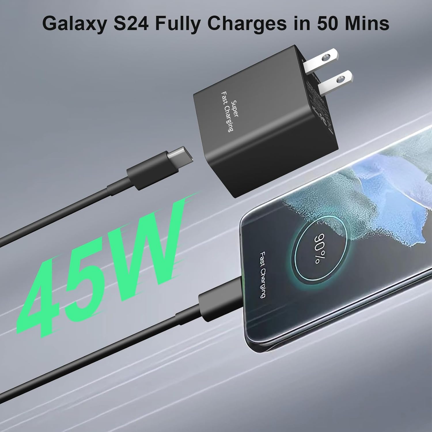 Ultra USB C Charger Fast Charging: The Type C charger fast charging supports 45W fast charging for Galaxy S24/S23/S22 Ultra/Plus, Note 10 Plus, Galaxy Tab S8, S8 Ultra, S7 Plus…The 45 Watt USB C Charger allowing for Galaxy S24 Ultra to reach full charge in 62 minutes