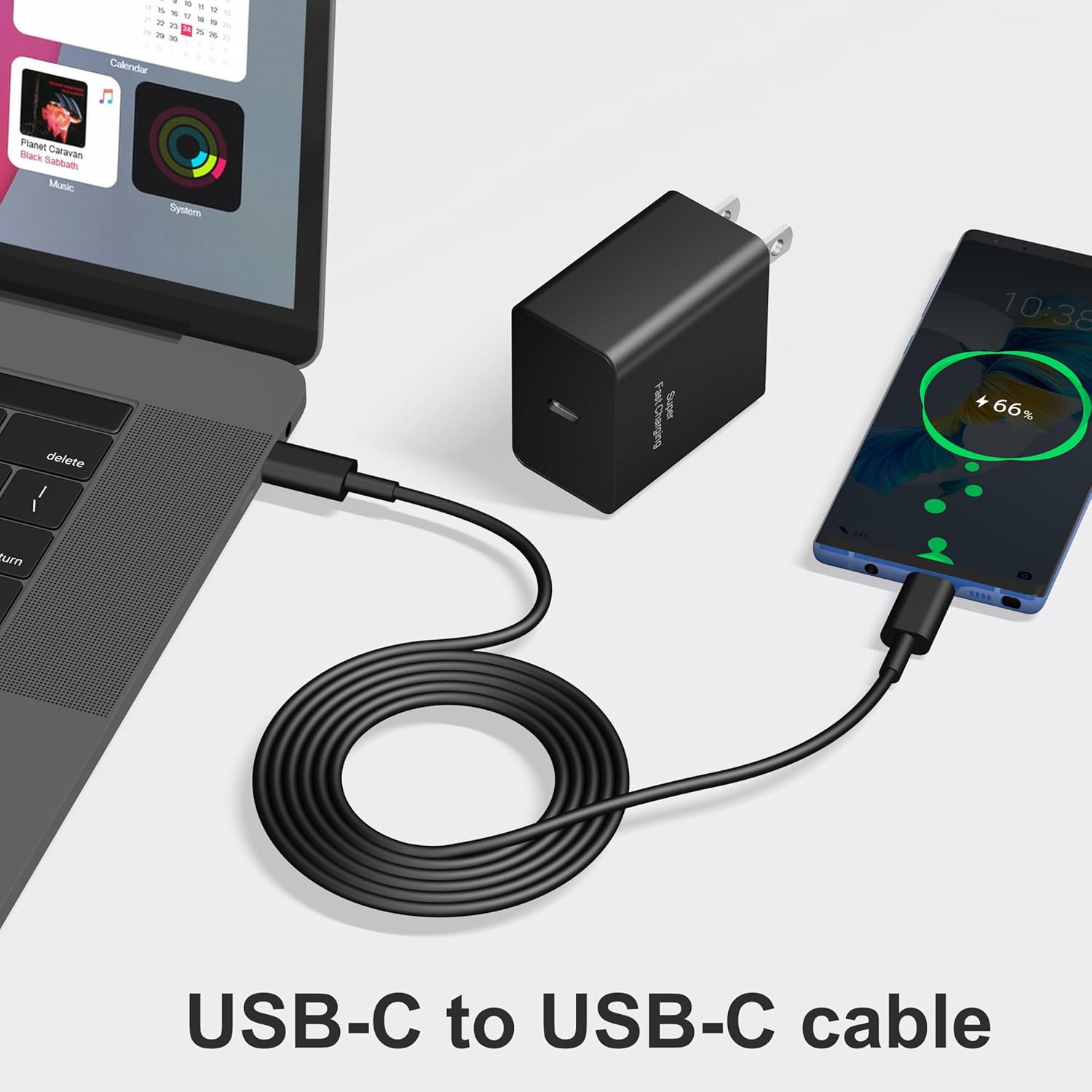10FT USB C TO USB C Cable: 45W USB C Charger Long cable offers freedom during fast charging, allowing Type C Charger Fast Charging to avoid restrictions from socket locations. The USB-C to USB-C cable can connect to 45 W USB C Charger block or any other USB C power source, such as computer or portable battery