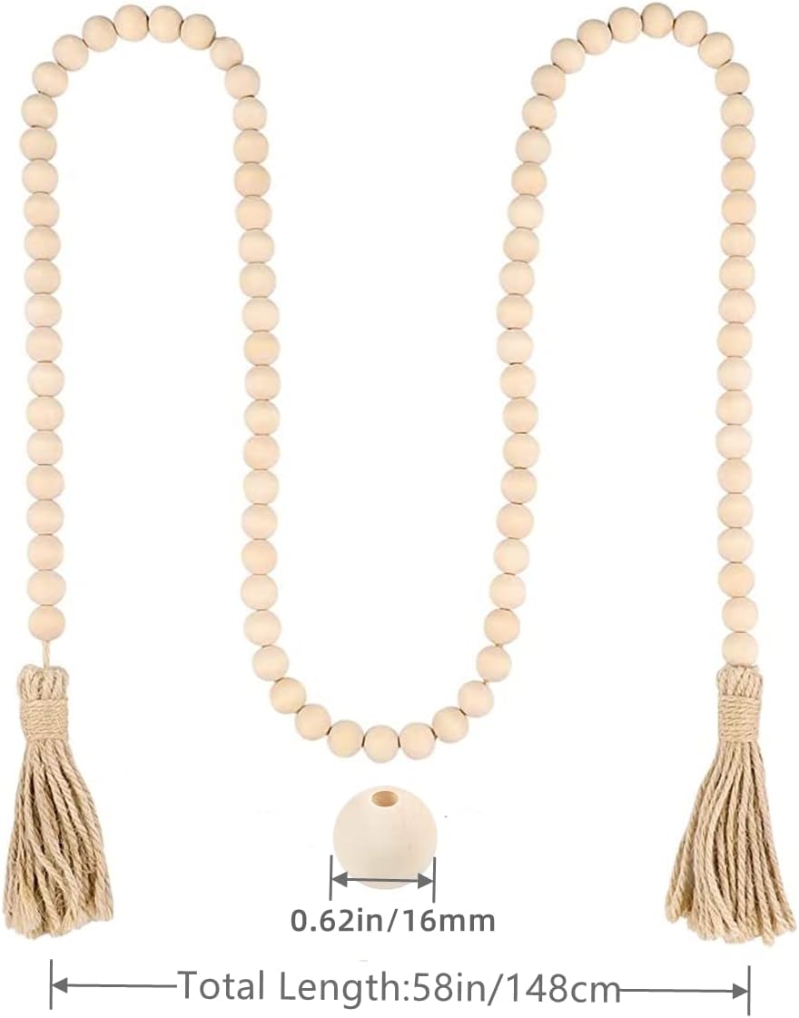 Strand of Beads Size:bead garland full length is 58inch,beaded portion of the garland is 47in(bead to bead),wood beads dia 0.63 inch.84 beads are on each garland,tassel is 15in.