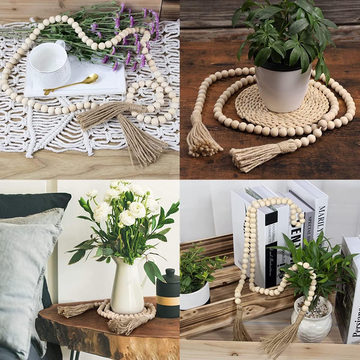 Quality Wooden Beads: Made from natural round wood beads and jute. Wooden beads are sturdy, it’s hard to broken or damaged, Restrictive and ease of use with slip knots, Fit for any decor.