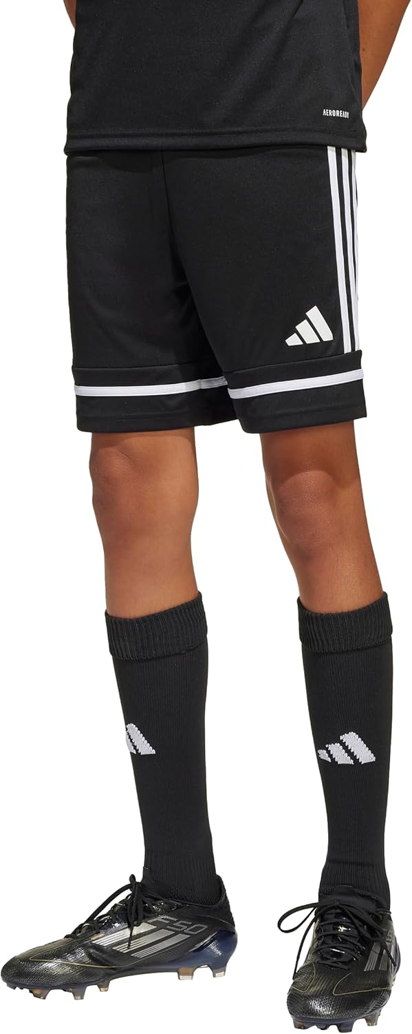 Look and play like a team in these juniors’ soccer shorts from adidas. Adjust the drawcord at the waist for the perfect fit. Moisture-absorbing AEROREADY will keep you dry and focused through every arrowing strike. Wear them with the Squadra 25 jersey for a professional look.