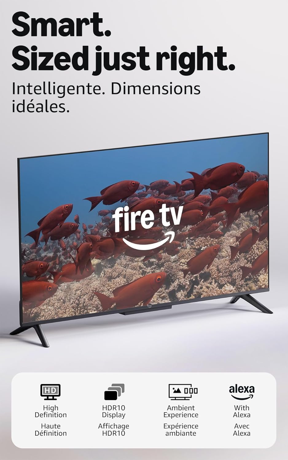 Smart. Sized just right. – The Fire TV 2-Series has everything you need for essential entertainment that fits your space. Access apps fast and watch content come to life in HD 720p.