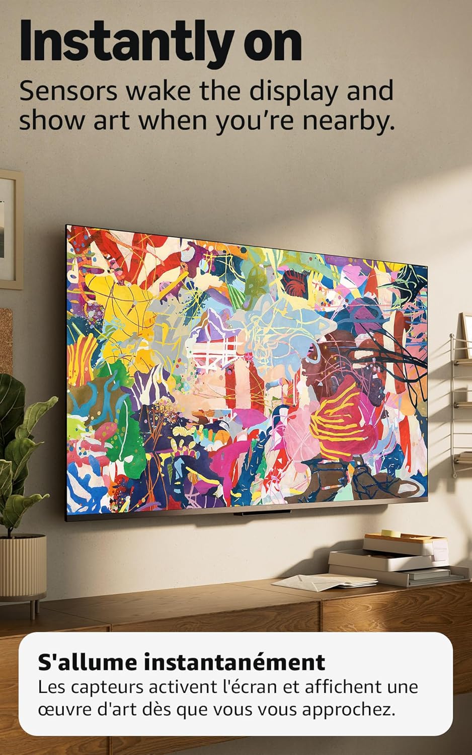 Instantly On – Introducing our custom Omnisense technology. Built-in sensors wake the display when you enter to show your favorite artwork or let you start watching in a snap.