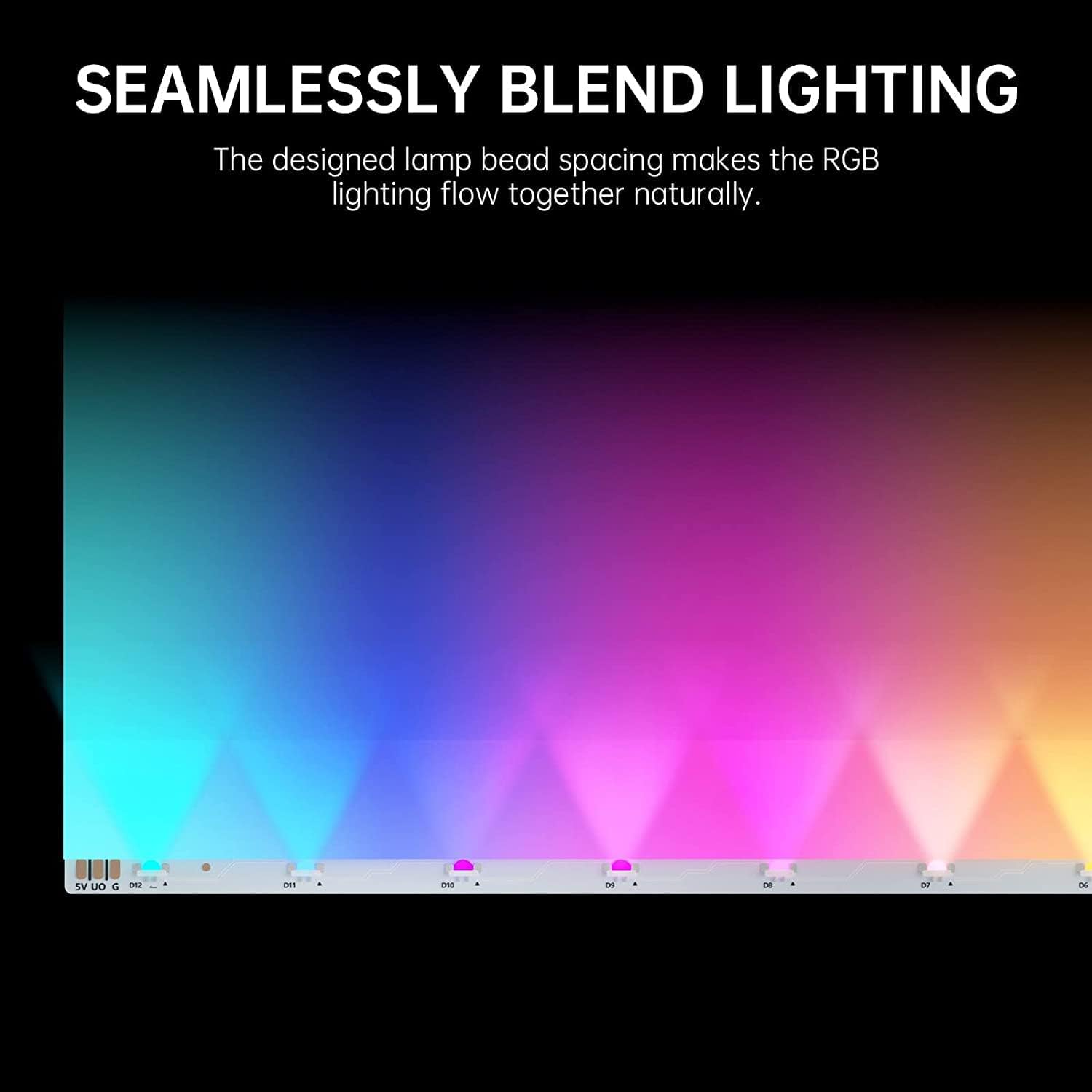 Clear Lighting Effects: The addressable led strip has 28 independent addressable RGB LEDs, split between two separate bars. The designed LEDs spacing allows lighting to flow together naturally, easy to create smooth color gradients.