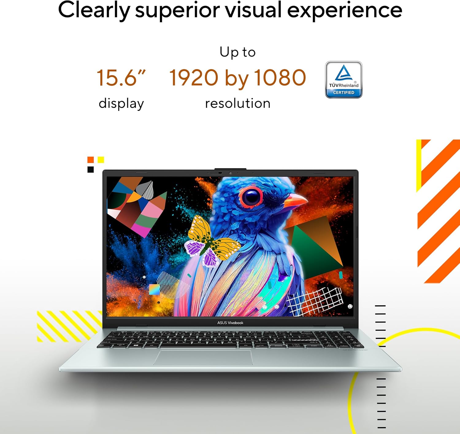 【 Stunning visual experience 】Featuring a 15.6” Full HD display, this ASUS laptop offers stunningly crisp and clear visuals, with a reduced risk of eye strain during long viewing sessions thanks to its TÜV Rheinland eye-care certified panel.