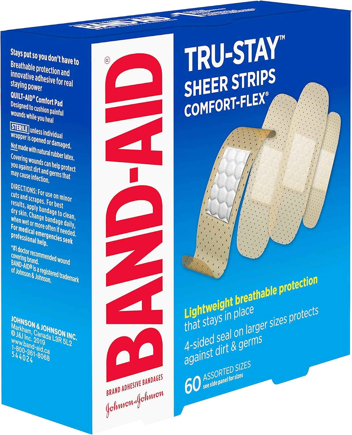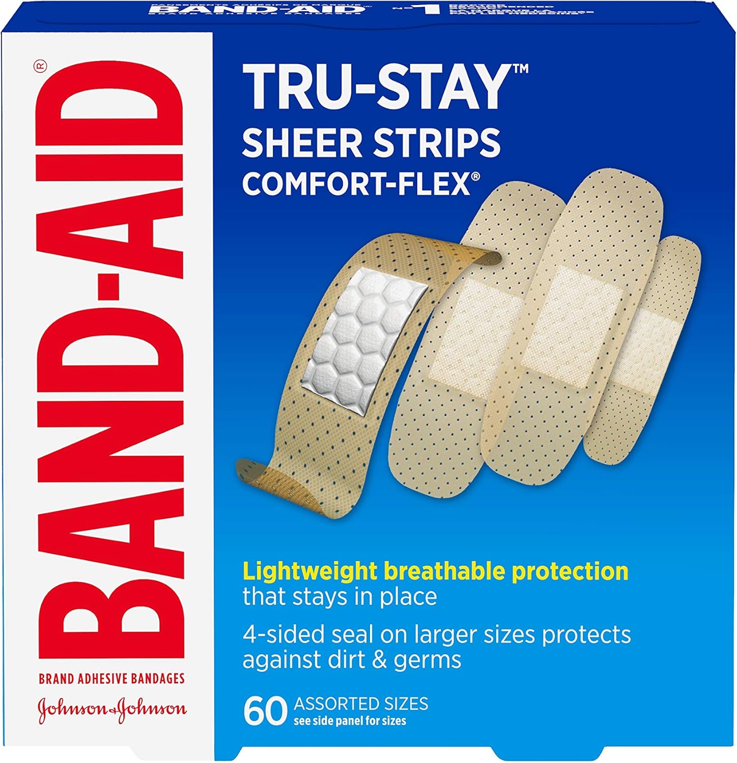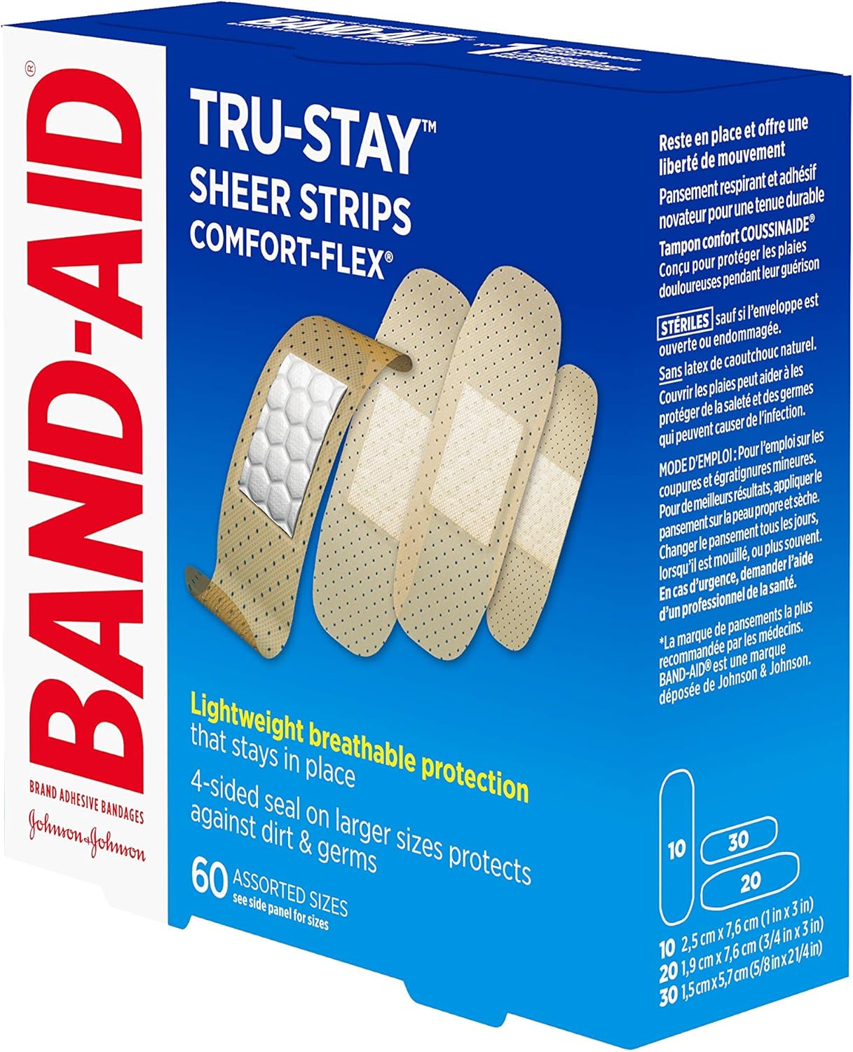Band-Aid comfort-flex assorted strips bandage family pack. Comfort-flex bandages provides greater comfort and flexibility, so bandages stay on longer and provide the protection you want. Bandages are all purpose. Made of plastic material. Also gives breathable protection for everyday cuts and scrapes. Includes 60 bandages per pack.